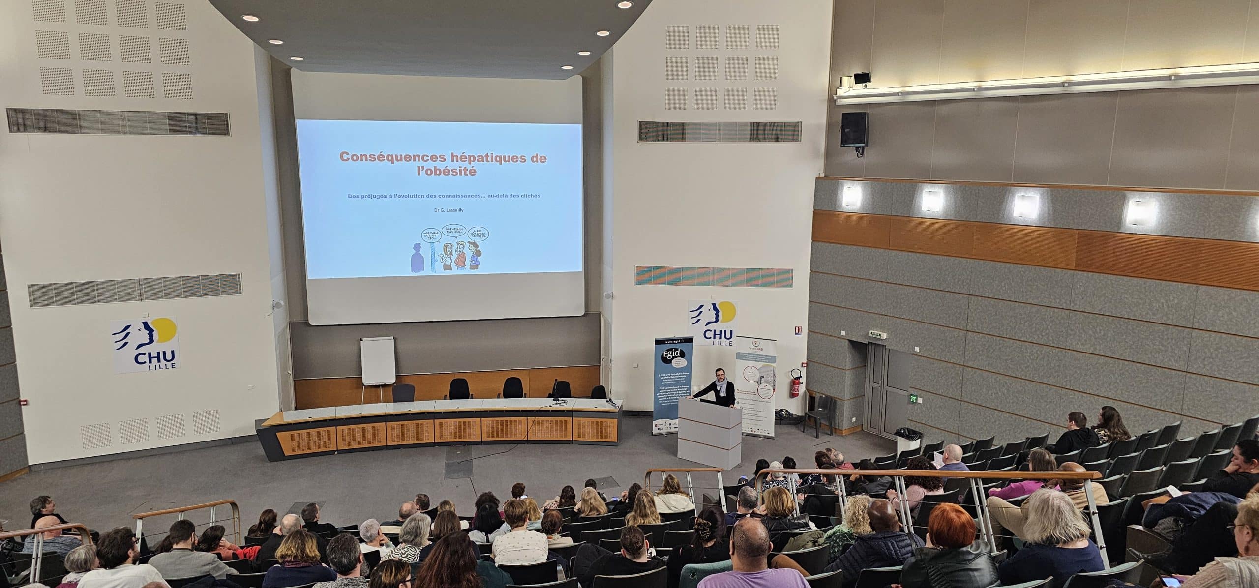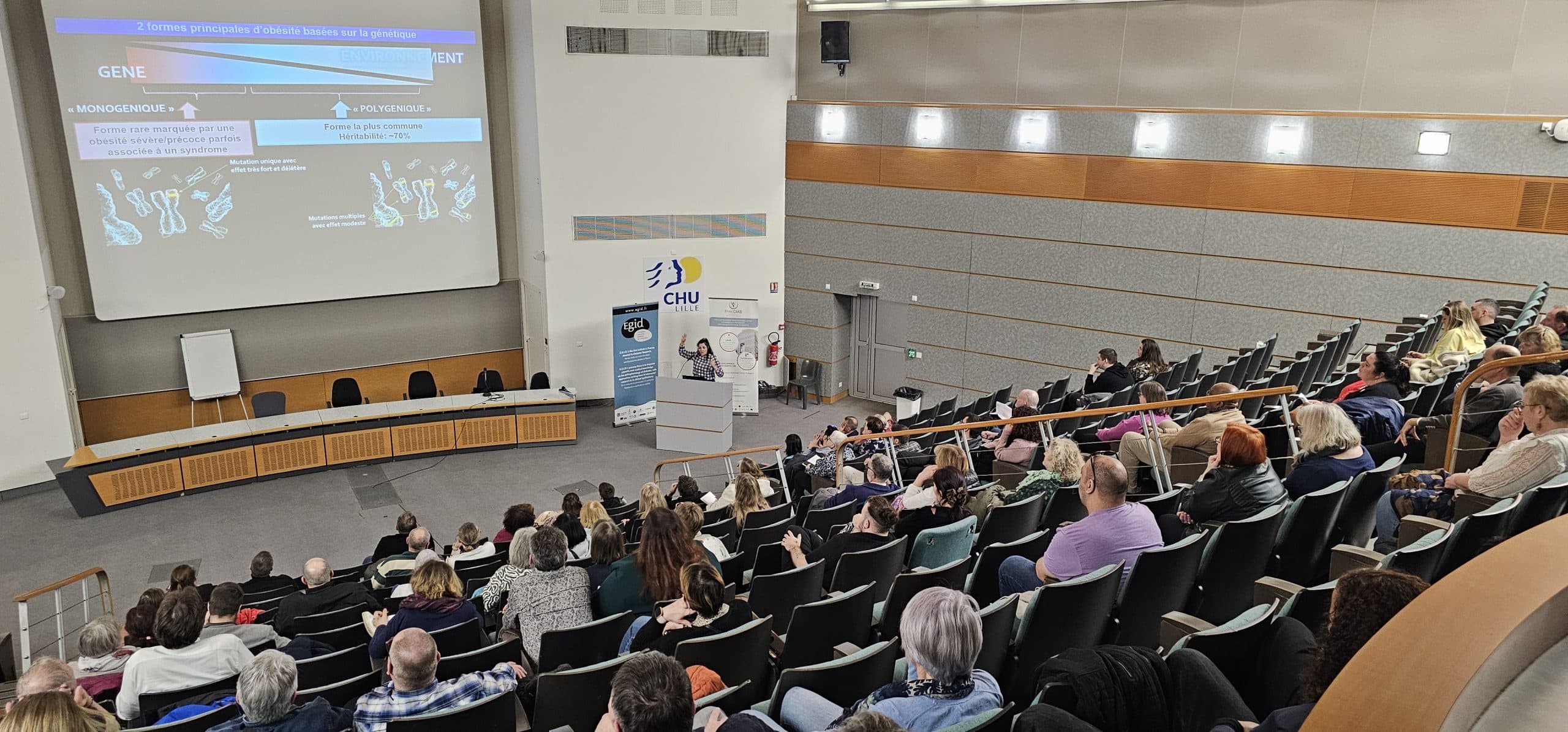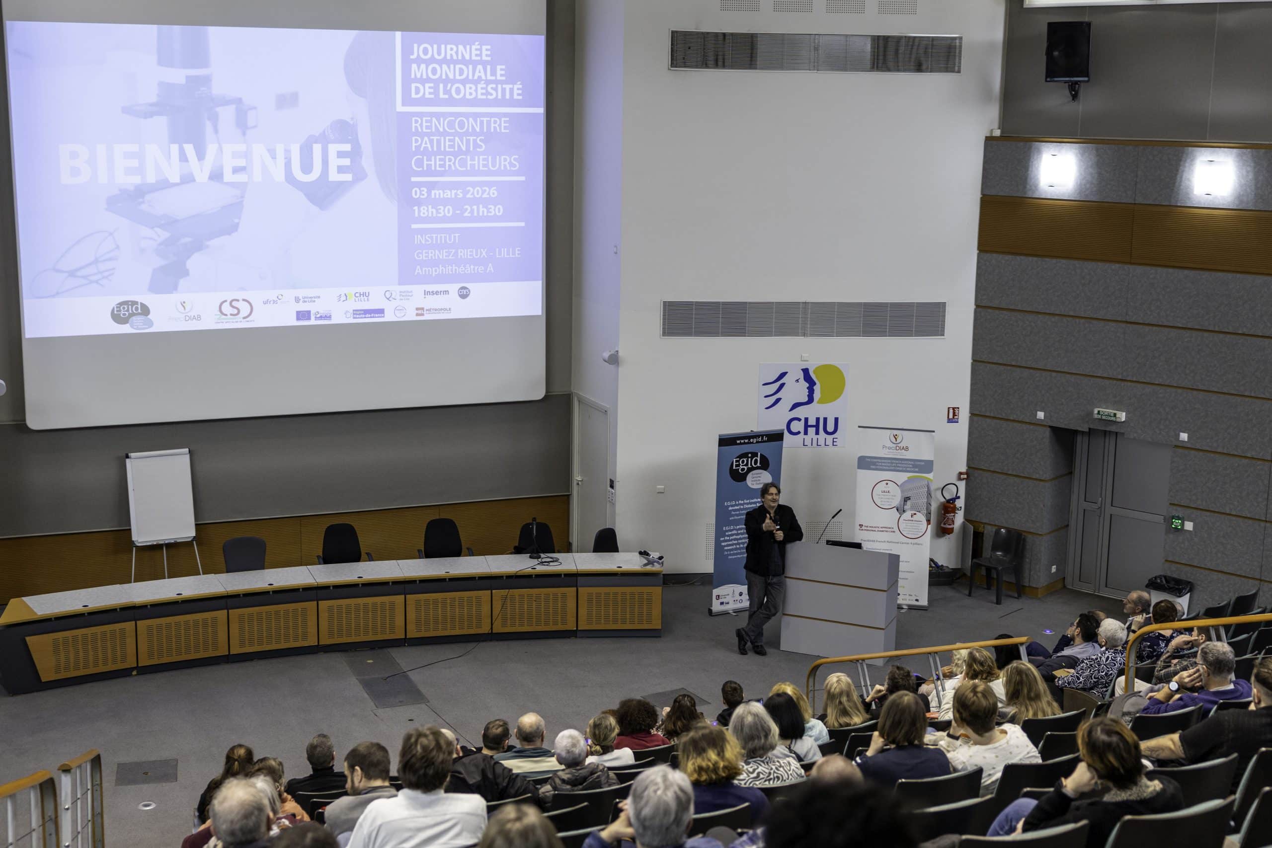 Le 3 mars dernier, à l’occasion de la Journée Mondiale de l’Obésité, l’Institut de Recherche EGID et PreciDIAB ont organisé une rencontre patients-chercheurs à l’Institut Gernez Rieux. Cet événement a rassemblé plus de 150 patients, chercheurs et professionnels de santé autour d’un temps d’échange riche consacré aux enjeux actuels de la recherche sur l’obésité.